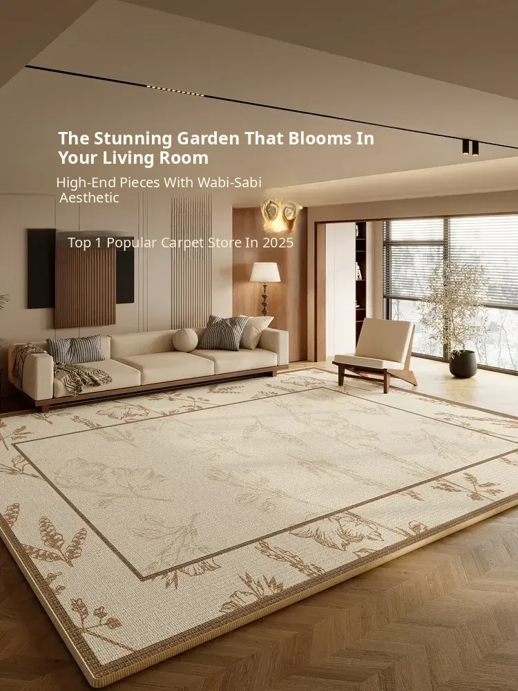 Elegant Wabi-Sabi Vintage Carpet for Living Room - 2025 New Design, Washable & Easy-to-Clean Sofa and Bedroom Mat, High-End Retro Home Decor