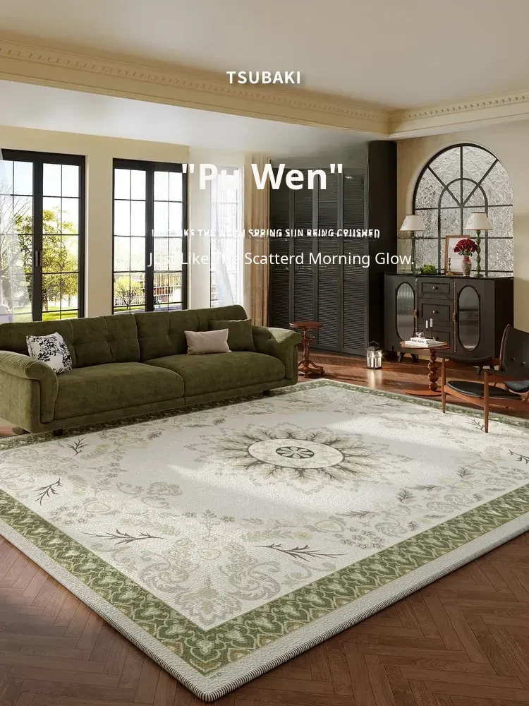 2026 New Vintage French Style Carpet - Washable Retro Green Area Rug for Living Room, Bedroom, and Sofa - Effortless Cleaning, Perfect for Cozy Spaces!