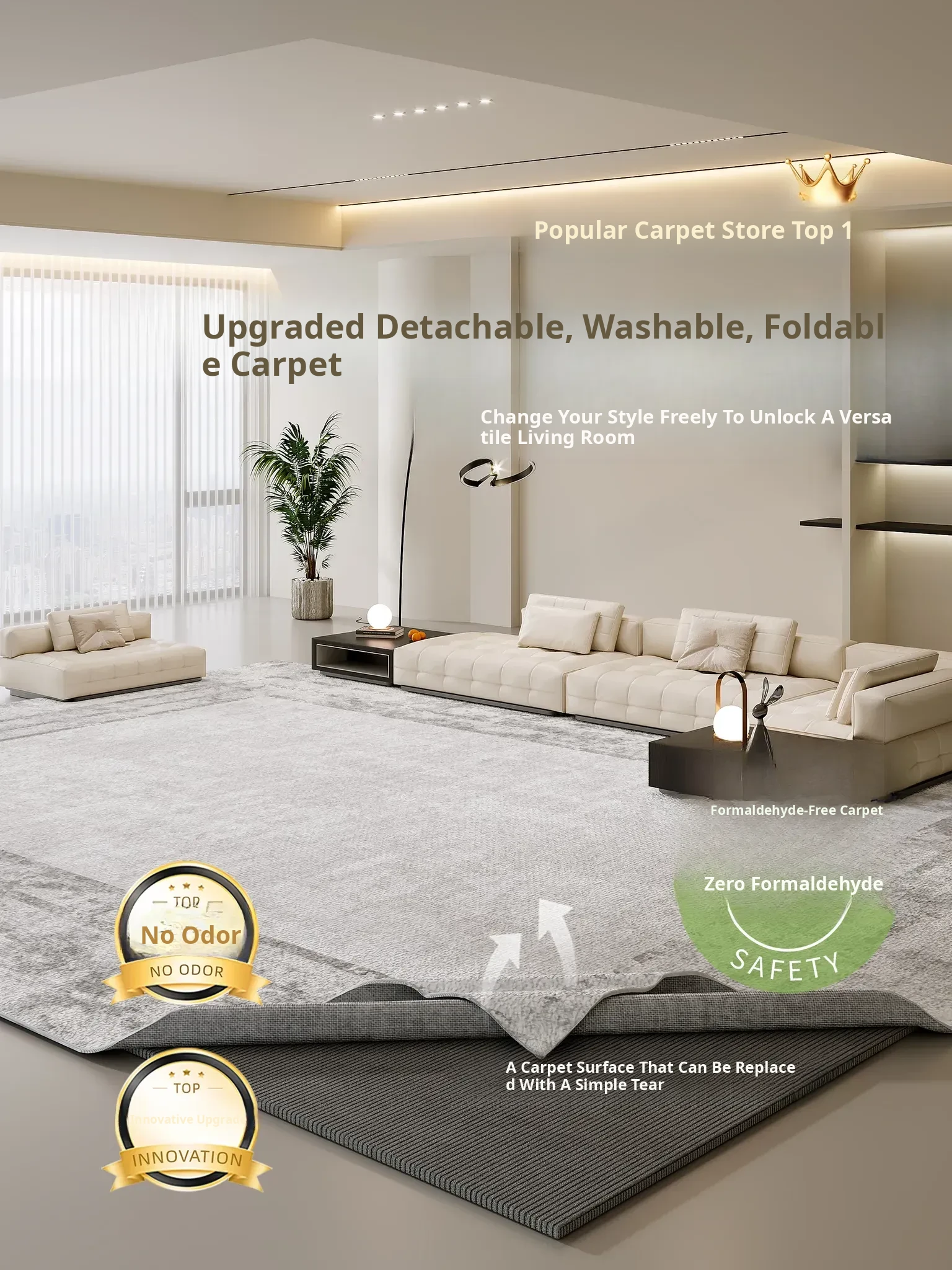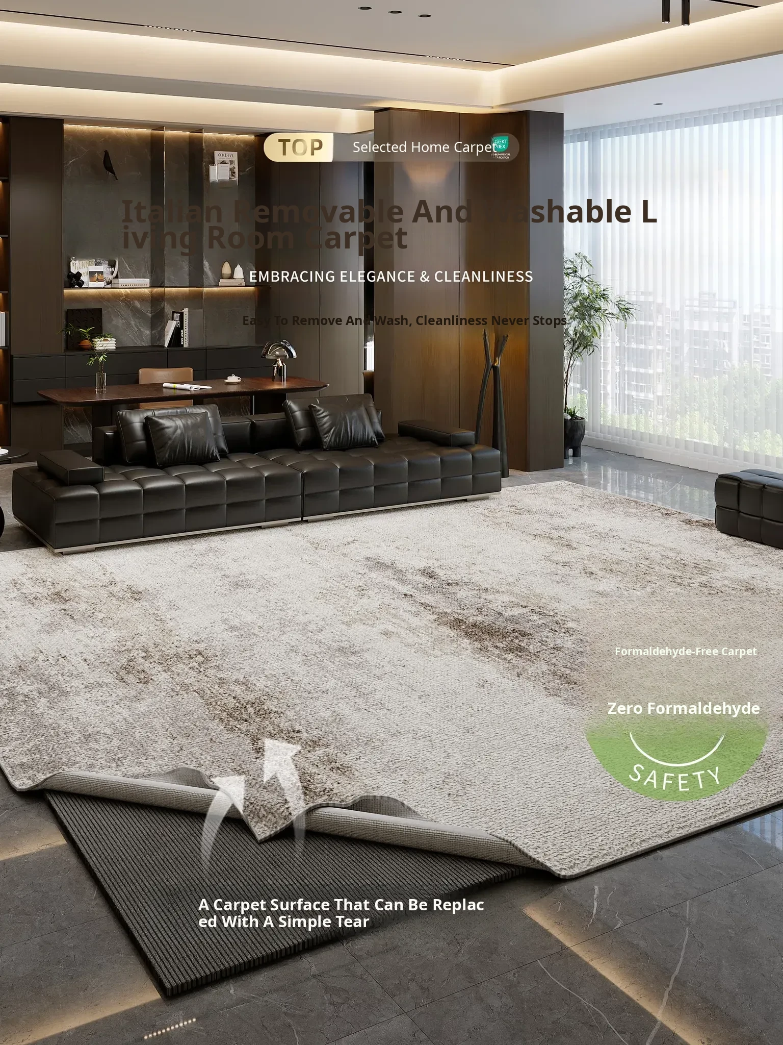 Luxury Removable and Washable Carpet for Living Room - Italian Double-Layer Design, Easy-Clean, No-Wash Needed, Perfect for Bedroom or Bedside Use