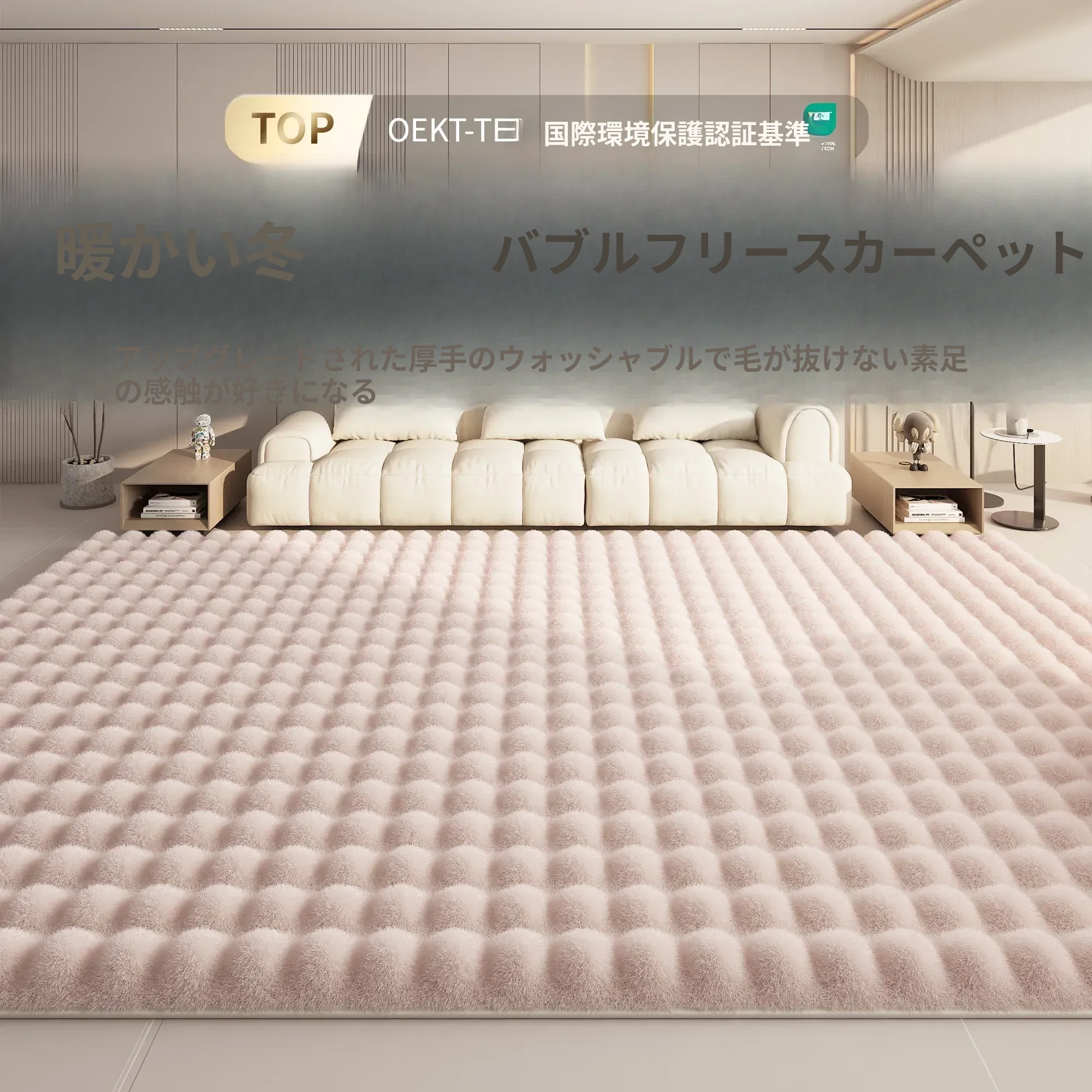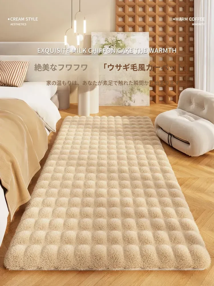 リビングルームや寝室に最適!女の子向けピンクのバブルフリース・ウサギ毛風ラグ、2026年新作クリーム風デザイン。秋冬にぴったりな心地よいマットで、優雅な空間を演出します!