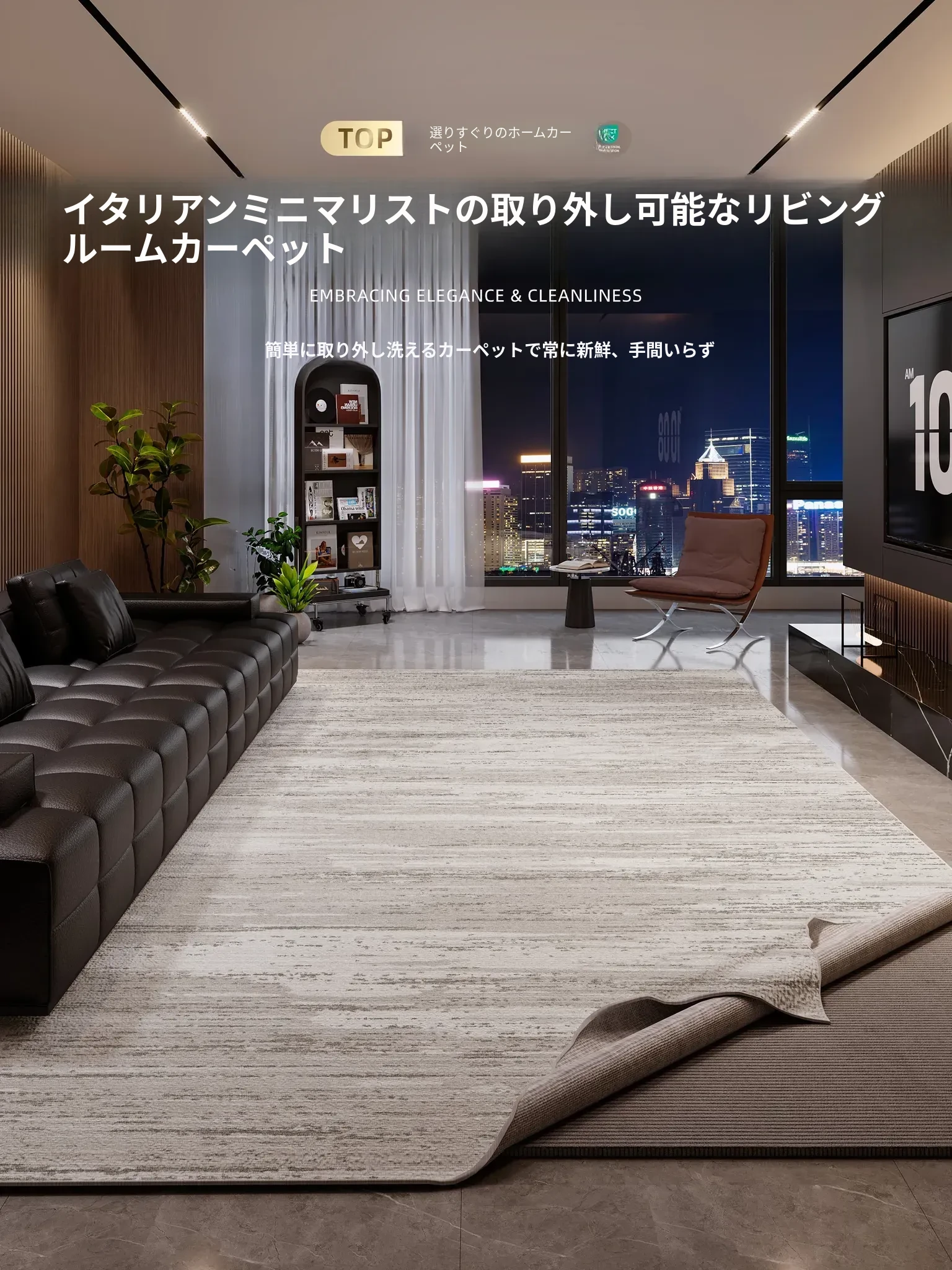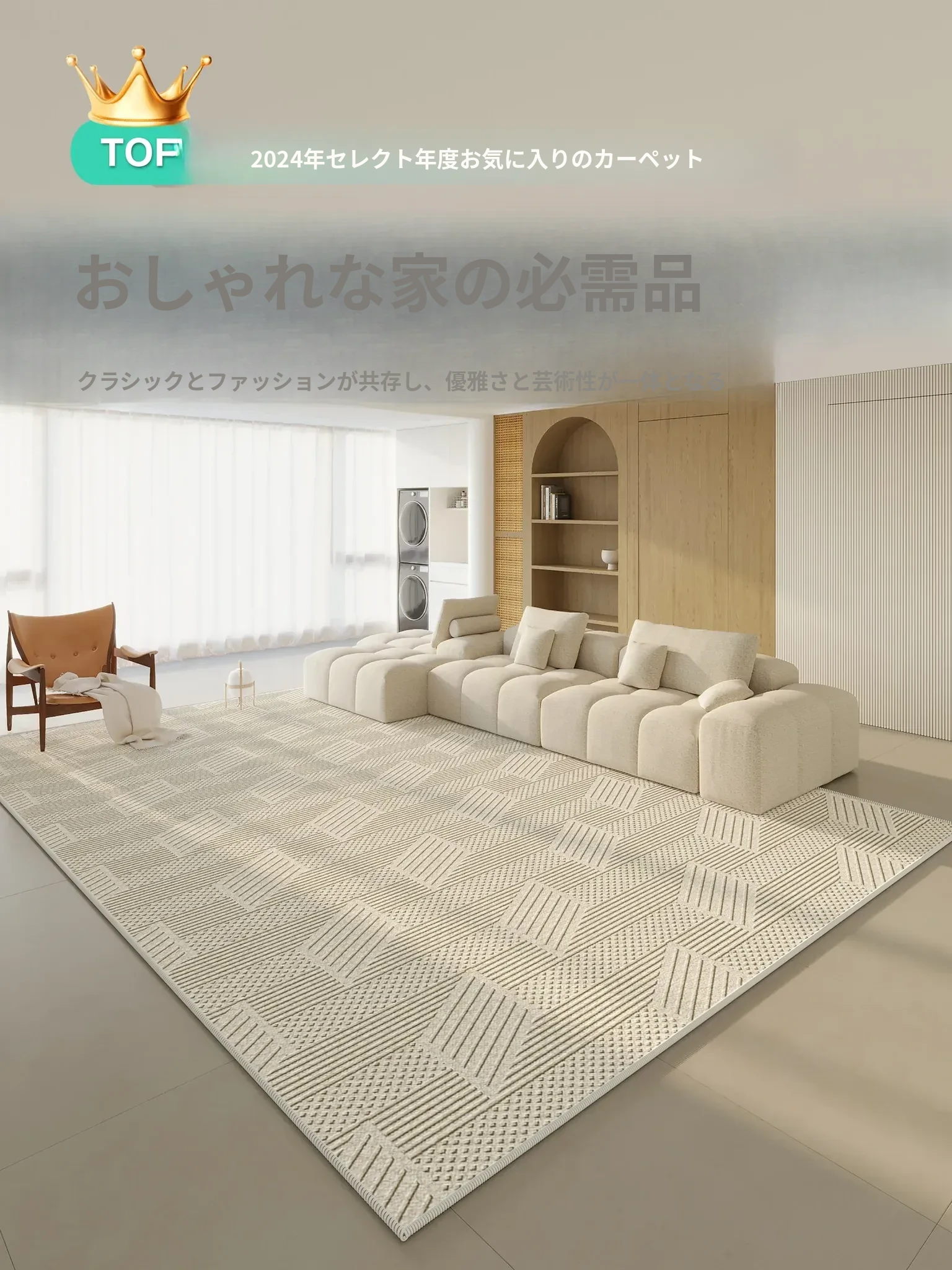 イタリアンラグジュアリー高級カーペット2025年新作!大面積全敷きタイプ、防水・防汚機能付きで、ベッドサイドマット不要の優れたアイテム。あなたのリビングをスタイリッシュに演出します!