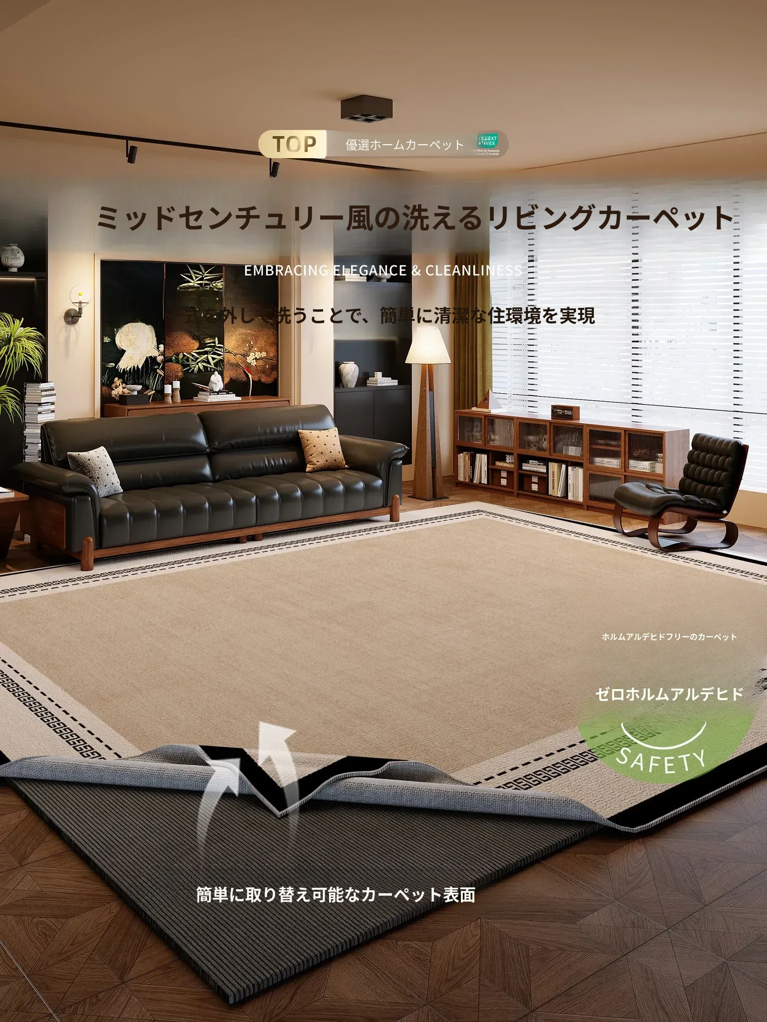 2025年新作!高級感あふれる中古風カーペット - リビングに最適!防水・防汚でお手入れ簡単!広いスペースにぴったりの全面敷き!