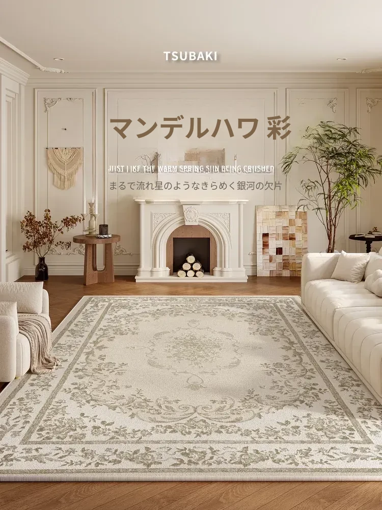 2025年新作!フレンチヴィンテージデザインの防水・防汚リビングラグ。広々としたスペースを演出し、上質な軽奢感をプラス。寝室にも最適な大面積フロアマットで、優雅な空間を実現!