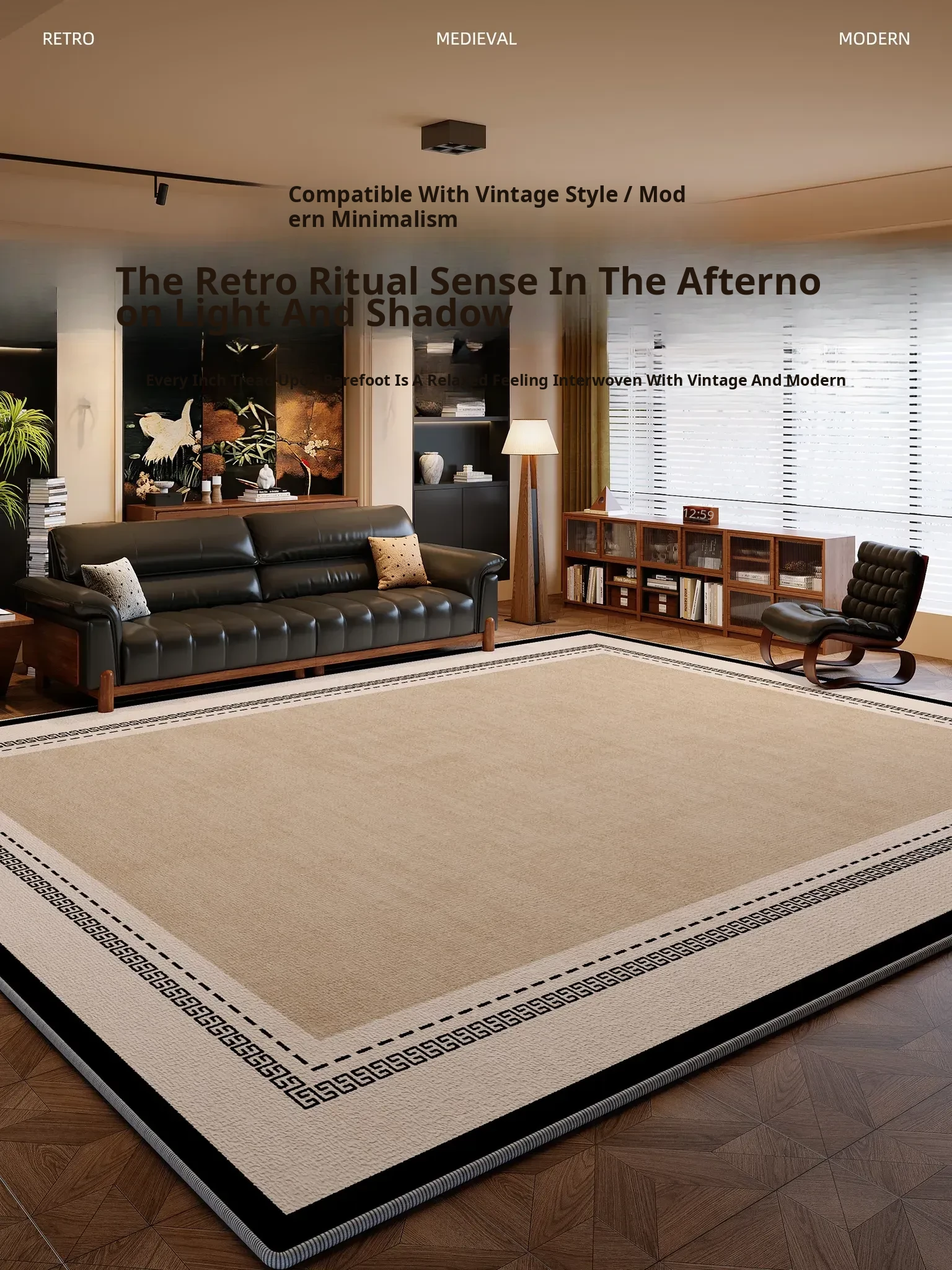 Vintage 2025 New Living Room Carpet - Retro Sofa and Coffee Table Mat, Waterproof and Soundproof Thick Bedroom Bedside Rug
