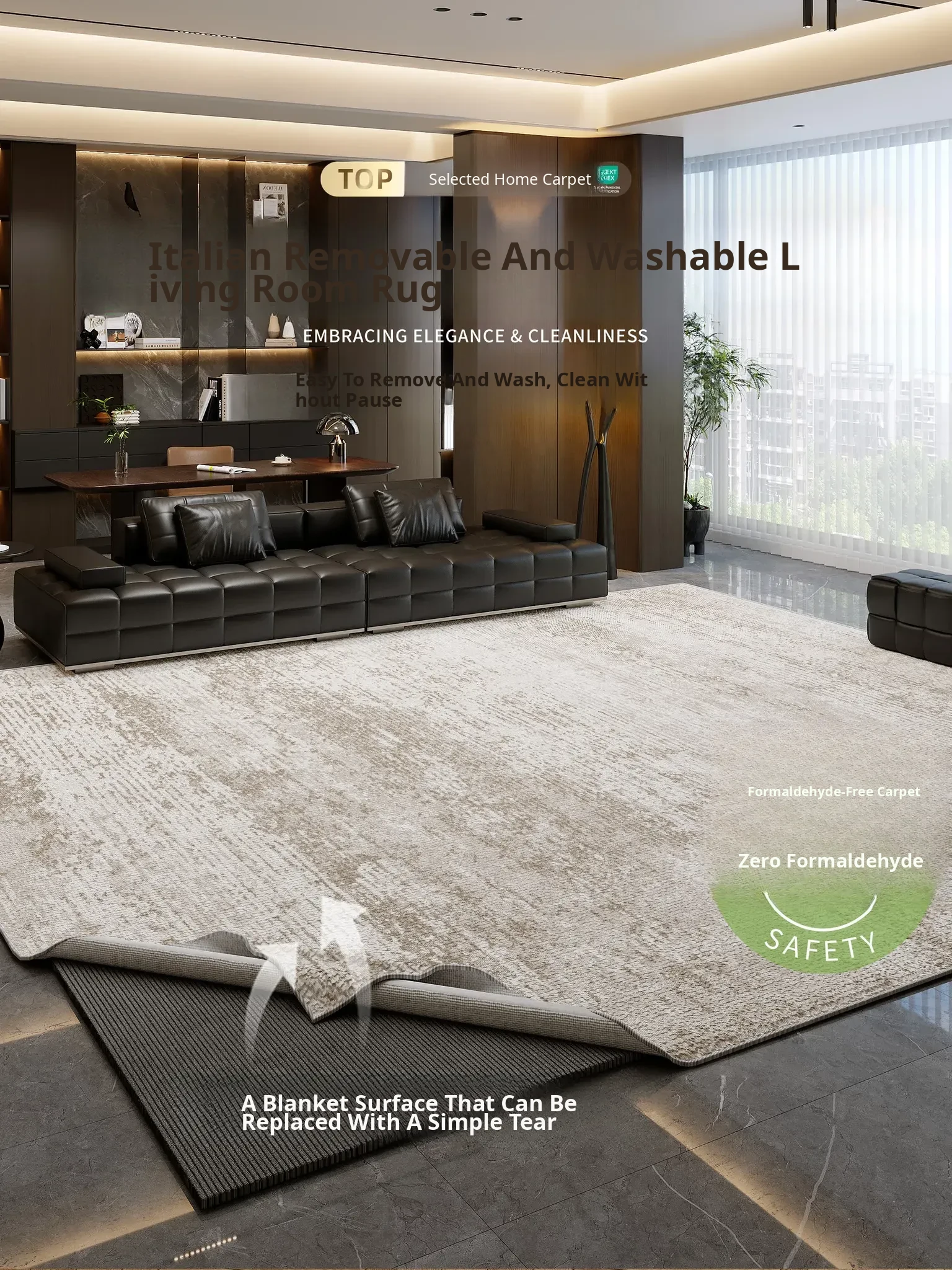 Luxury Removable and Washable Living Room Carpet - High-End, Low-Maintenance, Non-Slip Sofa Mat, Machine Washable, Double-Layer Bedroom Bedside Rug