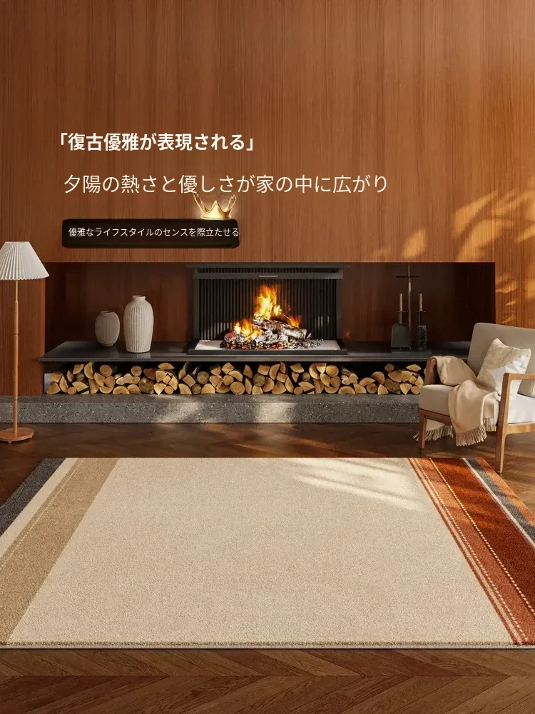 2026年新作!中古風デザインのラグマット - 高級感あふれる軽奢ソファや寝室にぴったり。お手入れ簡単、洗わずに拭くだけでOK!家用ベッドサイドマットとしても最適。快適な空間を演出します!
