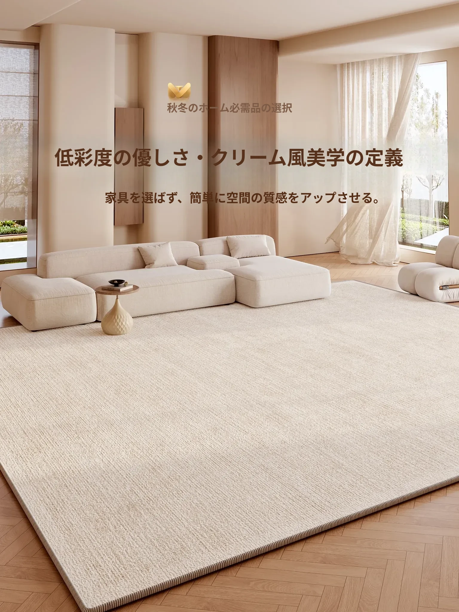 2026年新作!高級感あふれるクリーム風カーペット - リビングや寝室に最適なベッドサイドマット。シンプルでスタイリッシュ、防水・防汚でお手入れ簡単!あなたの空間を華やかに彩ります。
