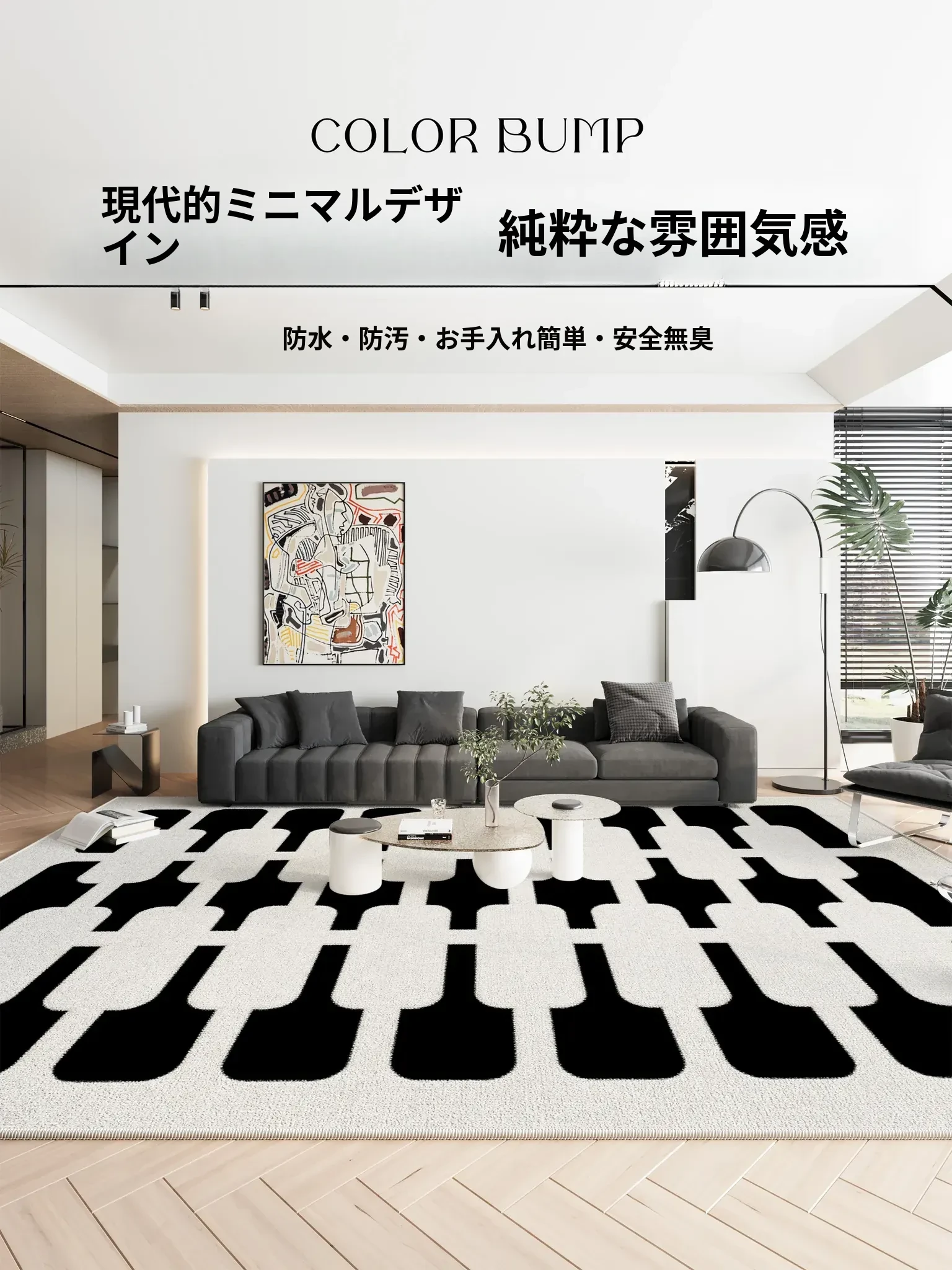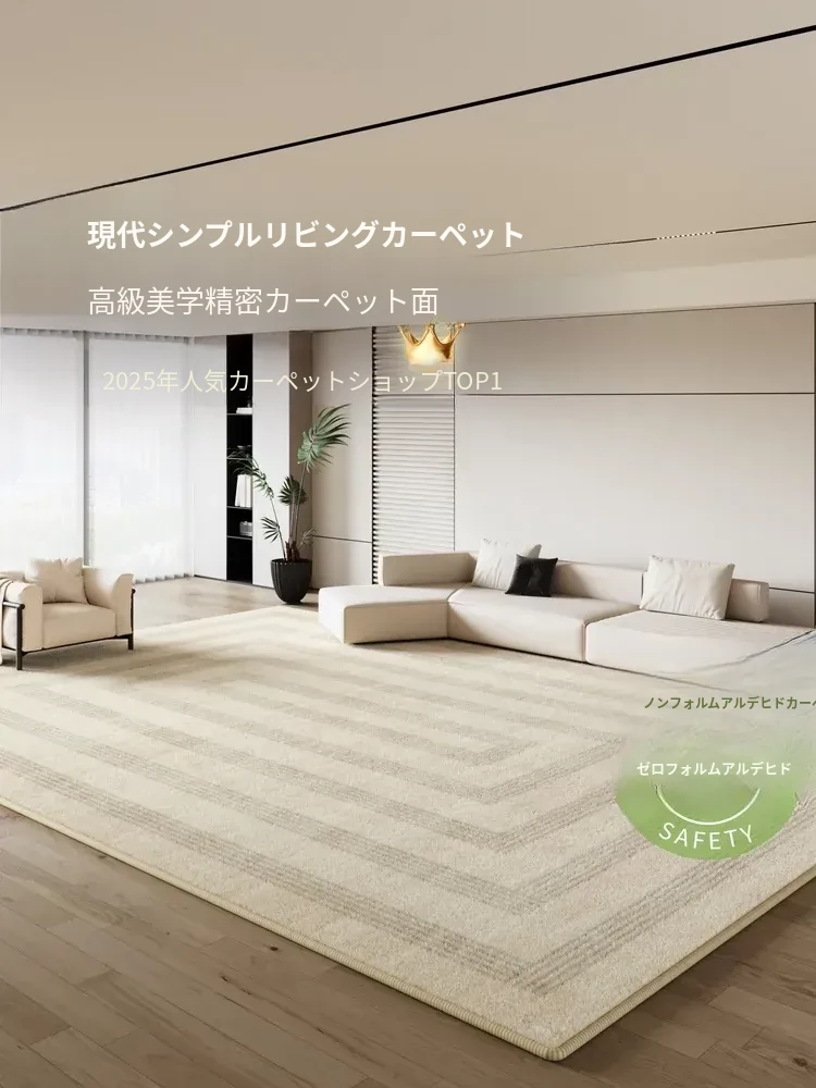 2025新作!モダンミニマリストデザインのリビングルーム用カーペット。お手入れ簡単で、ソファやベッドサイドにも最適。高級感あふれる防水仕様で、スタイリッシュな空間を演出します!