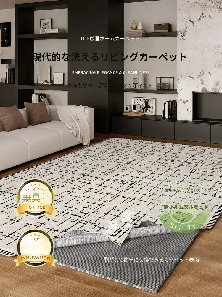 モダンミニマル2025新作ラグ、リビングルーム用洗濯不要・拭き取り可能な家庭用大面積敷物、手間いらずでお手入れ簡単!