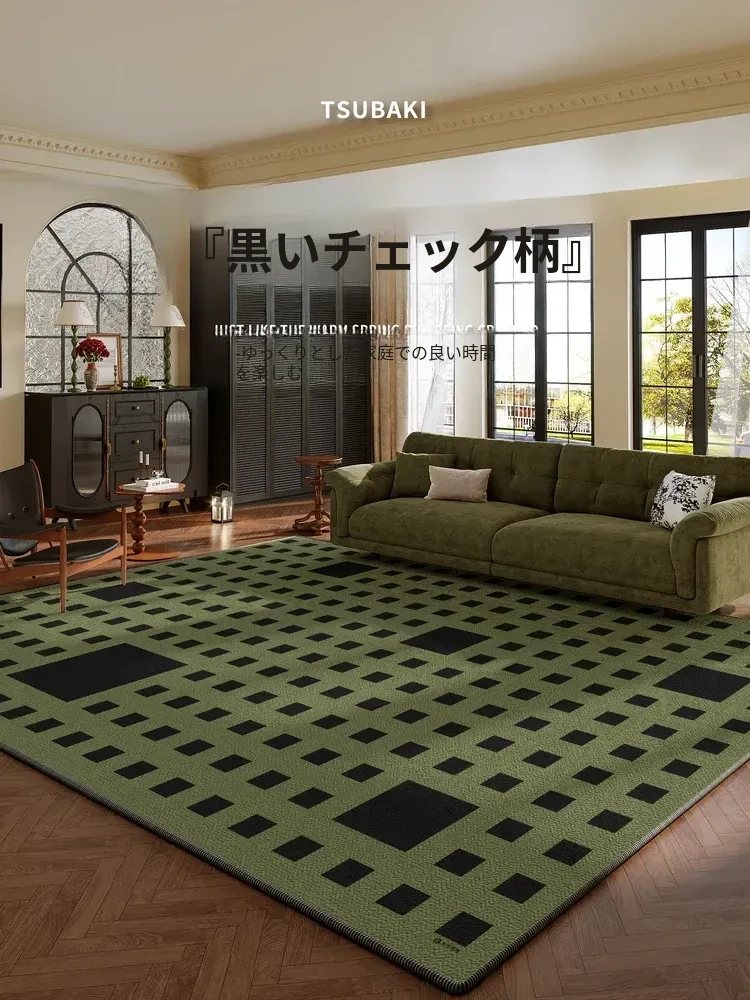 2026年新作!フレンチビンテージスタイルのグリーンラグ - リビングルームや寝室にぴったり!お手入れ簡単、洗わずに拭くだけでOK。ソファやベッドサイドに最適なデザイン!